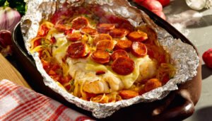 In general, this dish is found in all restaurants in southern Chile. It can be prepared with almost any type of fish and its characteristic flavor is very different from other dishes, this is due to the fat that the sausage provides to it.