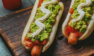4. To prepare the sandwiches following the traditional order you must: open the hotdog bun, place the frankfurter sausage, the diced tomato and the ground avocado. Finally bathe the sandwich in mayonnaise.