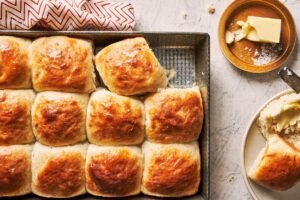 - Bake rolls until golden brown, 20-25 minutes. Remove from pans to wire racks. Serve warm.