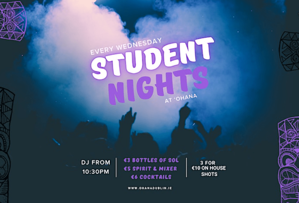 Are you a student in Dublin and you want to go out? Good news! Tonight, like every Wednesday, there is a party at the Ohana club for students. Ohana club is a great club located in Dublin. You can get together with your friends for a wonderful evening! On the programme: cheap drinks and great music with DJ Malo. Get your ticket!