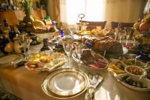 • A banquet is customary for all the families reunited, the main meal is normally pork or turkey.