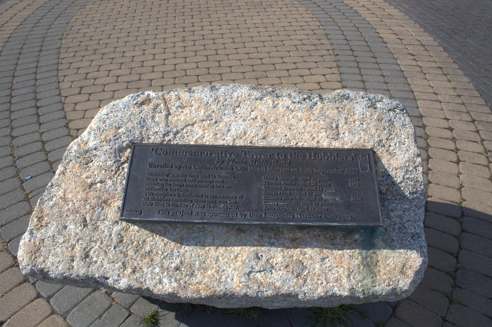 This next picture shows a closer look at the accompanying plaque to the ‘Commemorative Tower to the Hobblers’. It shows it was made by Fiona Holland and “Unveiled by An Cathaoirleach Cllr. Donal Mareen on 26th September 2002”. The statue was also “sponsored by Dun Laoghaire Harbour Company”, according to the plaque. Further historical information is given about the statue alongside the names of the Hobblers themselves, which states: “‘Hobbling’ was the term used to describe those who ensured safe passage and mooring for large boats coming into an unfamiliar harbour. This sculpture is dedicated to the memory of all Hobblers including those men who lost their lives in the line of duty in Dublin Bay.”
