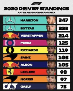 Here are the final standings of the Formula 1 2020 season: