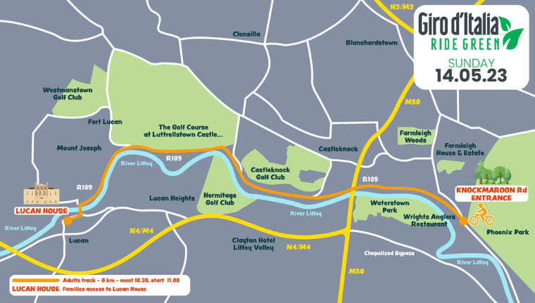 The ride will start at Phoenix Park’s westernmost point on Sunday, May 14, 2023, and end 8 kilometers later on the grounds of Lucan House, the official residence of the Italian ambassador to Ireland.