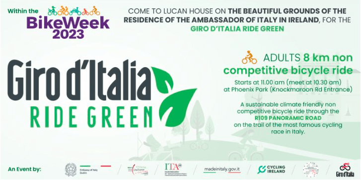 But this time, the Italian Embassy and other authorized partners who represent Italy in Ireland will hold the “Giro d’Italia Ride Green” bike ride during Ireland’s 2023 Bike Week.