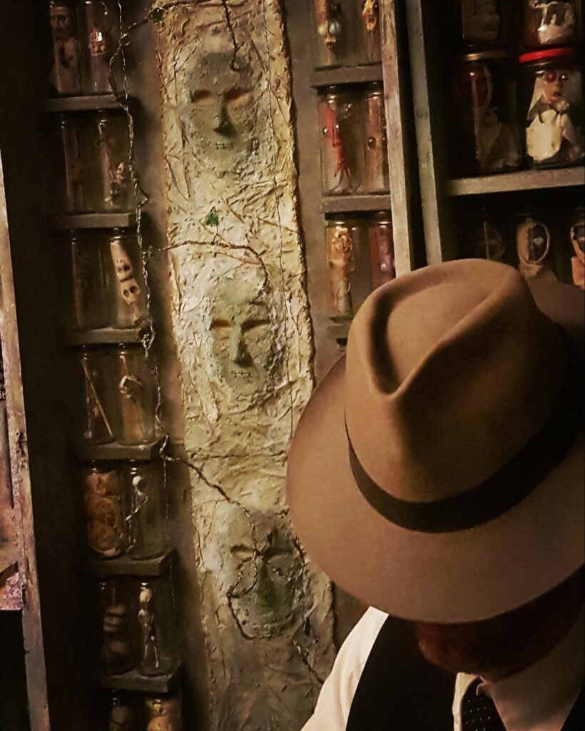 “I had ideas for a novel and I wanted to put it into something, then I thought, ‘I can make a novel out of physical objects,’ Which is where you are now. You are now in a novel made out of physical objects, using outsider aesthetics so then I can get away with not having great art skills because that’s not needed for the idea. I can still deliver the idea, I don’t need to be Michelangelo.”