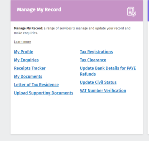 - Scroll down to the main PAYE Services tab