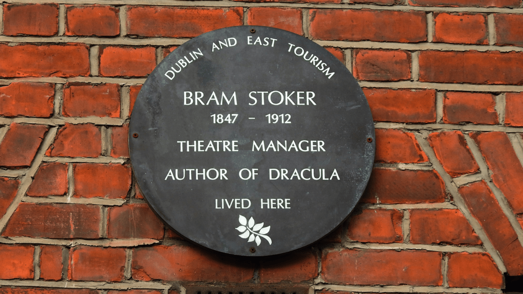 Sign outside the former home of Dracula author, Bram Stoker on 30 Kildare Street, Dublin. Image by Spooky Isles