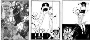 The main characteristics of the “decadent” were to try to escape the stagnant human apathy by emphasising on evil which was seen as unnatural and what also led to a movement within the visual arts that glorified and proudly presented the grotesque. These characteristics were found in works by both illustrators, for example in the figures in the foreground of Venus at her toilet, the musician in The Stomach Dance, and in Enter Herodias. Conclusively, Clarke’s drawings for Faust bring to light many ‘grotesques’ in his illustrations which he further used for fairy tales.