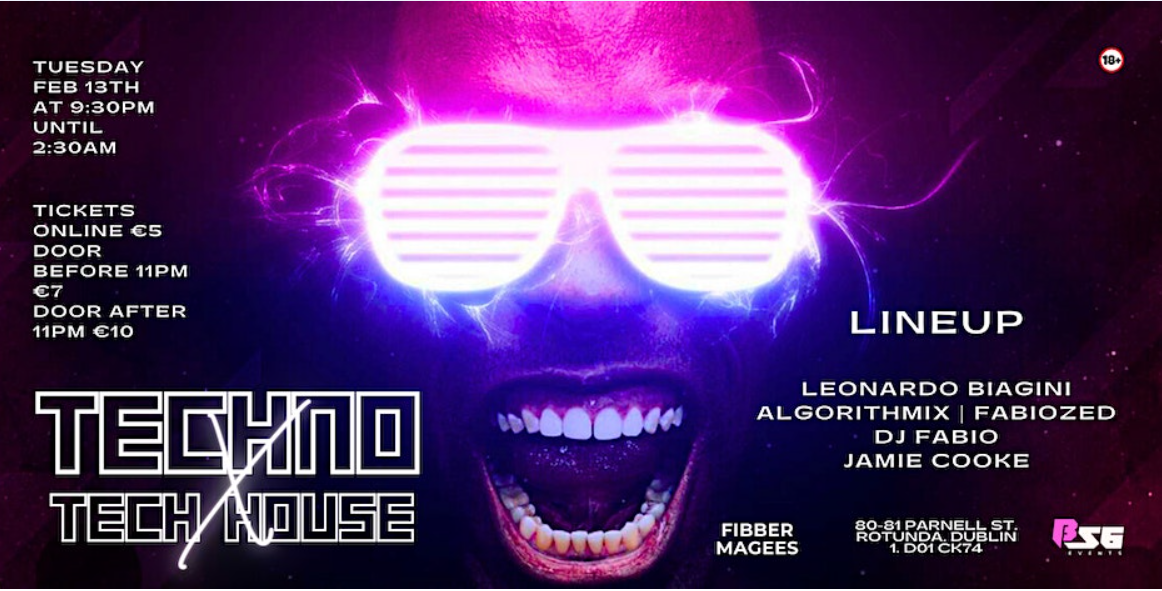 Have an amazing night with the best DJs of Tech House and Techno – Jamie Cooke, Leonardo Biagini, Algorithmix, Fabiozed and DJ Fabio. Do not miss this blockbuster lineup.