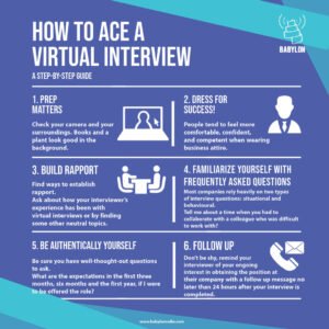 When communicating virtually, it’s still necessary to find ways to establish rapport. You can do this by being prepared to talk about a common interest, asking how your interviewer’s experience has been with virtual interviews or by finding some other neutral topic with which to learn more about your interviewer.
